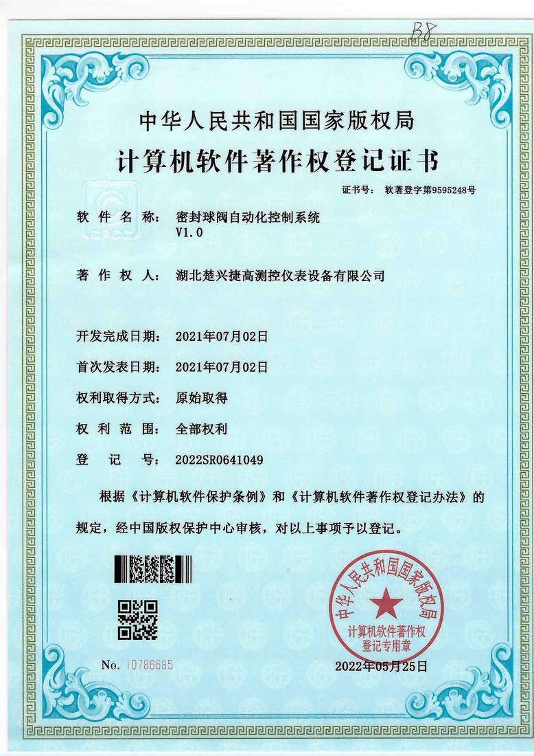 軟件著作權(quán)-球閥自動化控制系統(tǒng)